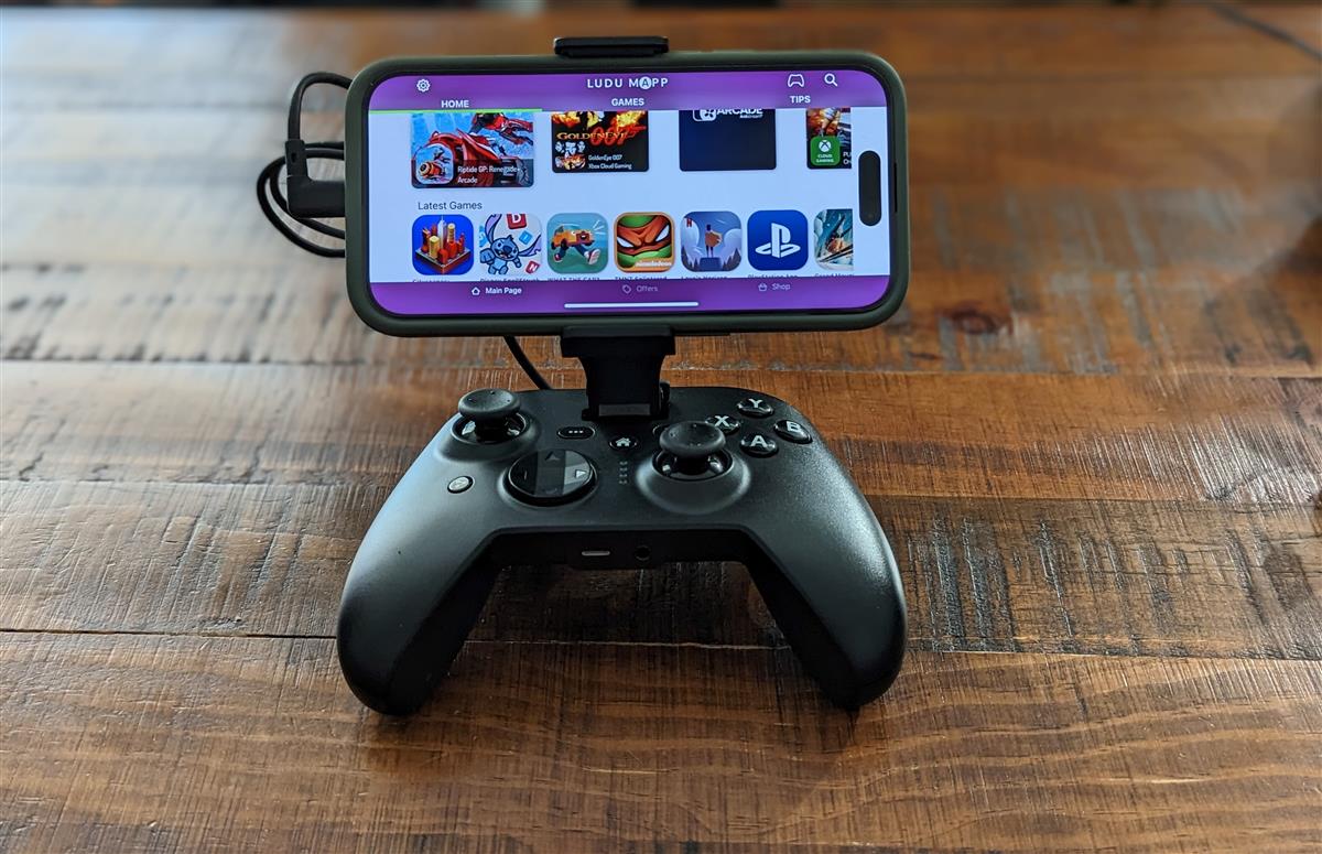 This Android USB Type-C-connected controller with a mobile device post holder